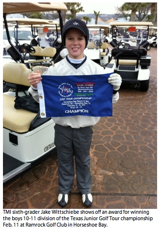 Wittschiebe, a sixth-grader at TMI – The Episcopal School of Texas, shot an opening round of 73, playing at Ramrock Golf Club at Horseshoe Bay with temperatures in the 40s. He shot birdies on two holes and was one under par on the back nine. Freezing rain cancelled play on Day 2.