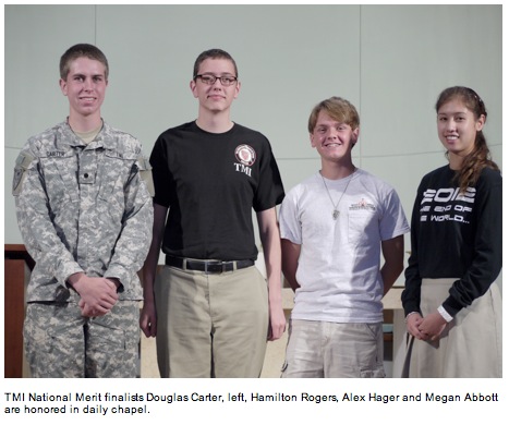 Four seniors at TMI – The Episcopal School of Texas were notified last month that they have been named finalists in the annual National Merit Scholarship competition. They are: Megan Abbott, Douglas Carter, Alex Hager and Hamilton Rogers.