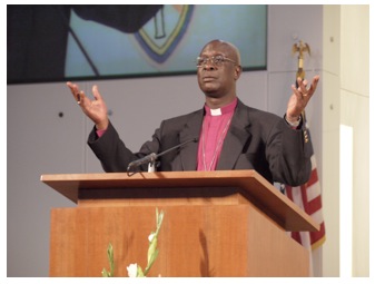 Taking as his text Romans 13:12 – “Let us put aside the deeds of darkness and put on the armor of light” – Bishop Kyamanywa told the story of the Ugandan Martyrs, 22 young Christian converts who were put to death by burning in the 1880s by King Mwanga II for defending their faith. The Martyrs, he said, sang hymns of praise until their last moments on Earth.