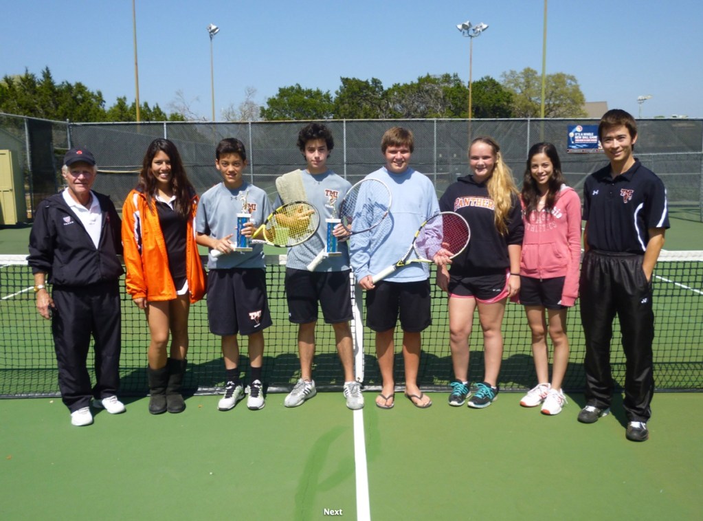 TMI Tennis took 2 of 4 titles at the pre-district tournament held at Lost Creek Country Club on Saturday, March 23, by winning the girls’ singles and boys’ doubles draws! Berkeley Brown won pre-district in girls singles by defeating Caroline Lane of Regents 6-1, 6-1 in the final, and the dynamic duo of Daniel Charlton and Rodrigo Zurita won the boys doubles title 6-4, 6-4 by defeating Xavier Castro/Holden Carpenter of SACS. Great job Panthers!