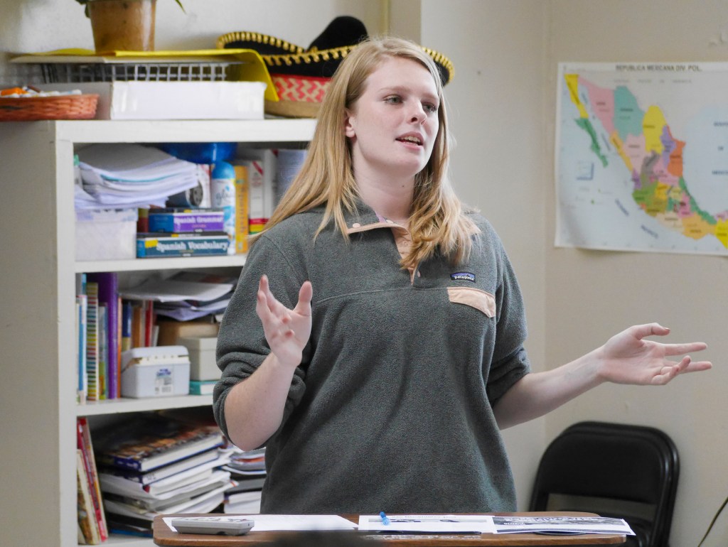 In English and in Spanish, Walker told students about the advantages of a gap or bridge year between high school and college: “You can become fluent in another language, learn about another culture, help other people and boost your own self-confidence.”