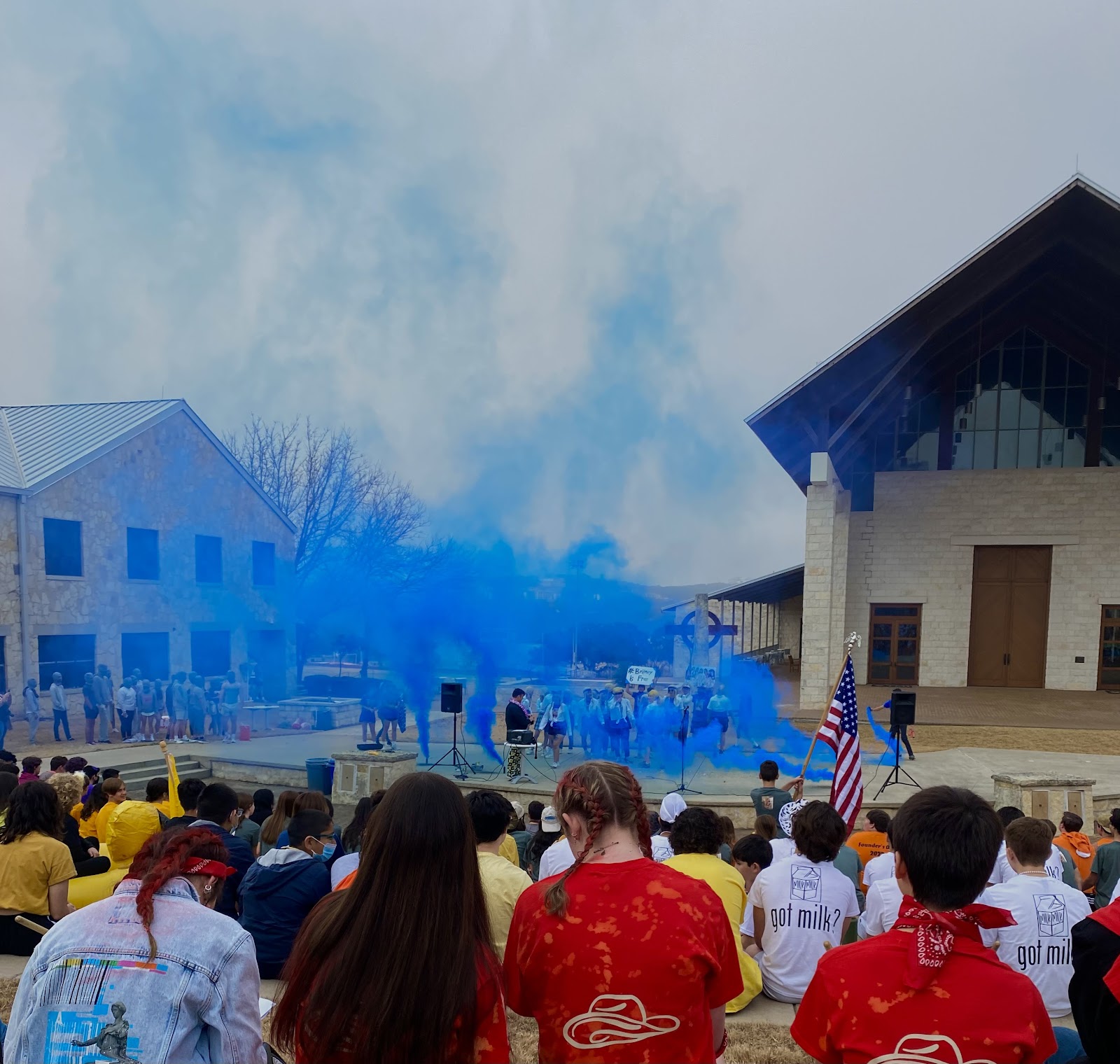 On Thursday, March 3rd of 2022, TMI’s students and staff celebrated Founder’s Day. The event started in the Johnston Amphitheater, where each team went on stage, performed an entertaining skit, and showed off their team spirit. After, the teams split up to conquer the individual events, including hula-hooping contests, checkers, chess, scavenger hunts, frisbee golf, egg toss, beanbag toss, and many other exciting activities. During the team events, such as tug of war and dragon’s tail, team members were required to work together to remain the last team standing. After a day filled with exciting events, all groups gathered on the bleachers to discover which team was the winner. Finally, the top five places were announced, and light blue came first! While orange and white tied for last place, they still shouted in excitement when their place was announced. Thank you, Mr. Allan Rupe, for another successful Founder’s Day!