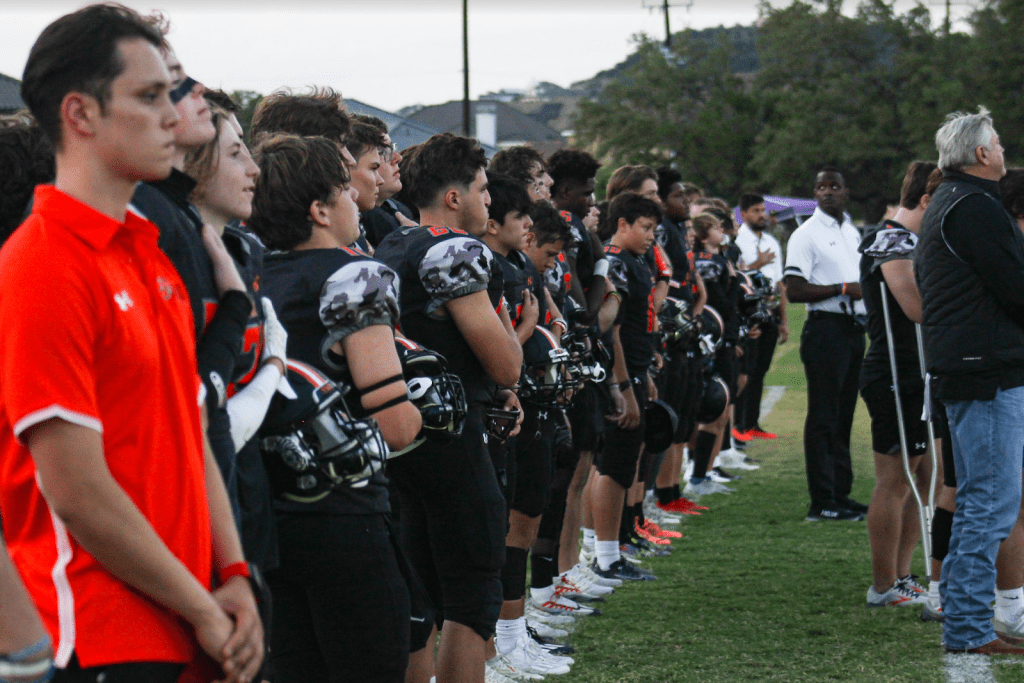 The TMI varsity football team witnessed a tough game against our rival school, San Antonio Christian Schools, also known as SACS. The TMI student body made sure to come out and support our fellow Panthers during this important game, especially the Corps of Cadets who organized a pre-game tailgate party and marked their spot on the bleachers, singing cheers and doing push-ups after touchdowns per TMI tradition. Although it was a close game, TMI lost to the SACS Lions with a score of 18-21. Team Captain, Colin Behrens ’24, states, “We played our hearts out and the fan turnout along with the alumni was greatly appreciated. The football team will continue to fight in our games and make a name for ourselves.”