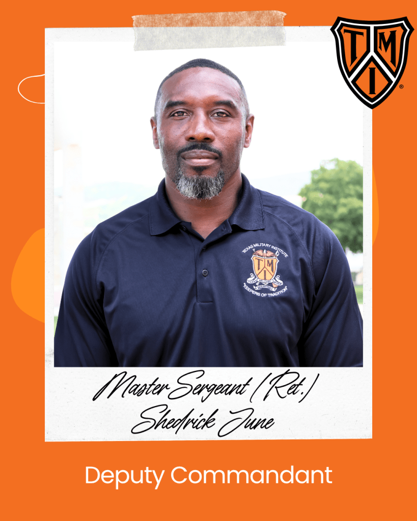 We are also excited to welcome Master Sergeant (Ret.) Shedrick June, who joined TMI in July as our new Deputy Commandant. Originally from Lane, South Carolina, MSG June began his military service immediately after high school and served honorably in the U.S. Army for over 21 years as a healthcare specialist. His service included multiple deployments across the Middle East in support of Operation Desert Storm and the Global War on Terror.
